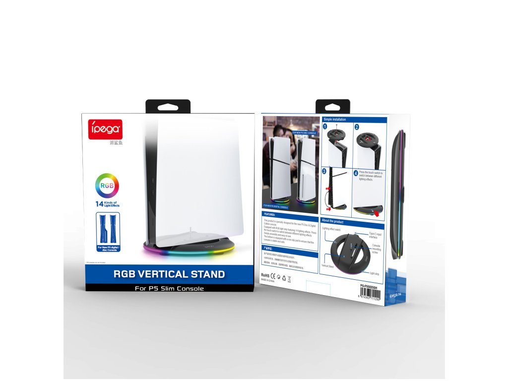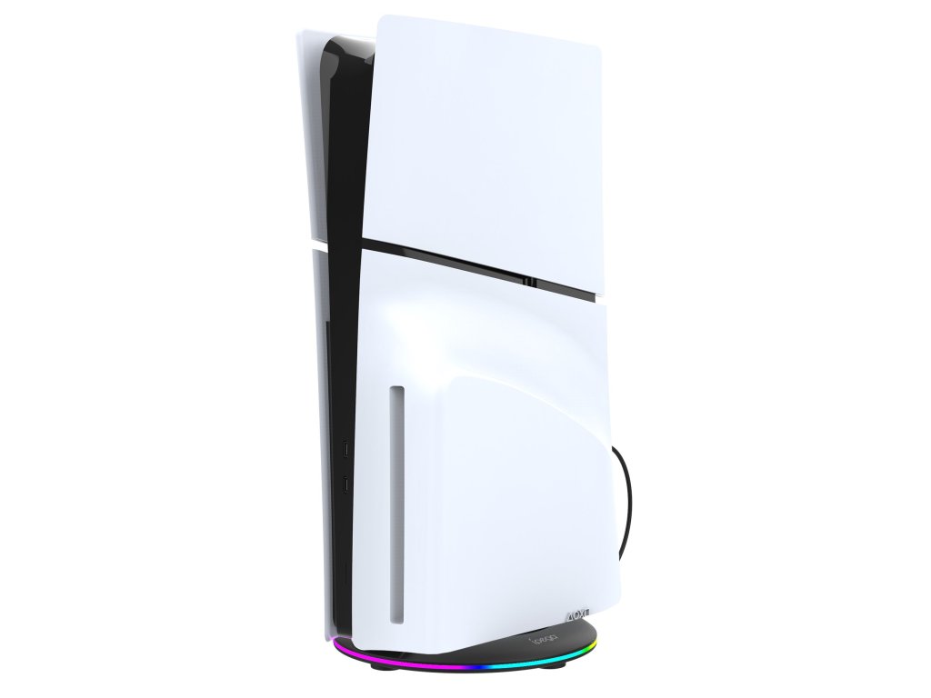 iPega P5S025S vertikální stojan určený pro Playstation 5 Slim.Stojan je po celém obvodu vybaven RGB podsvícením, které dodá vašemu hernímu doupěti ten správný nádech.