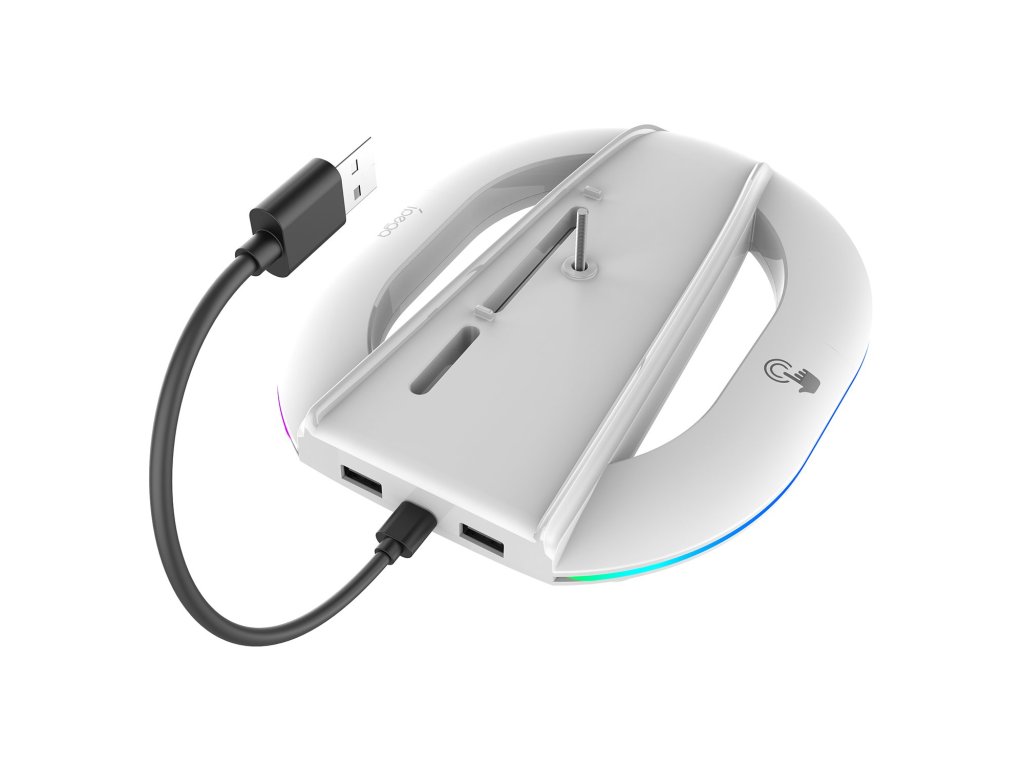 iPega P5S035SA Vertikální Stojan (2xUSB-A) s RGB pro PS5 Slim/PS5 Pro White
