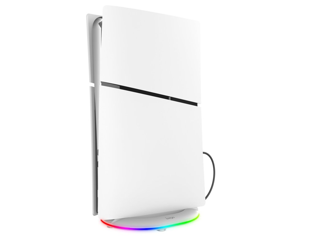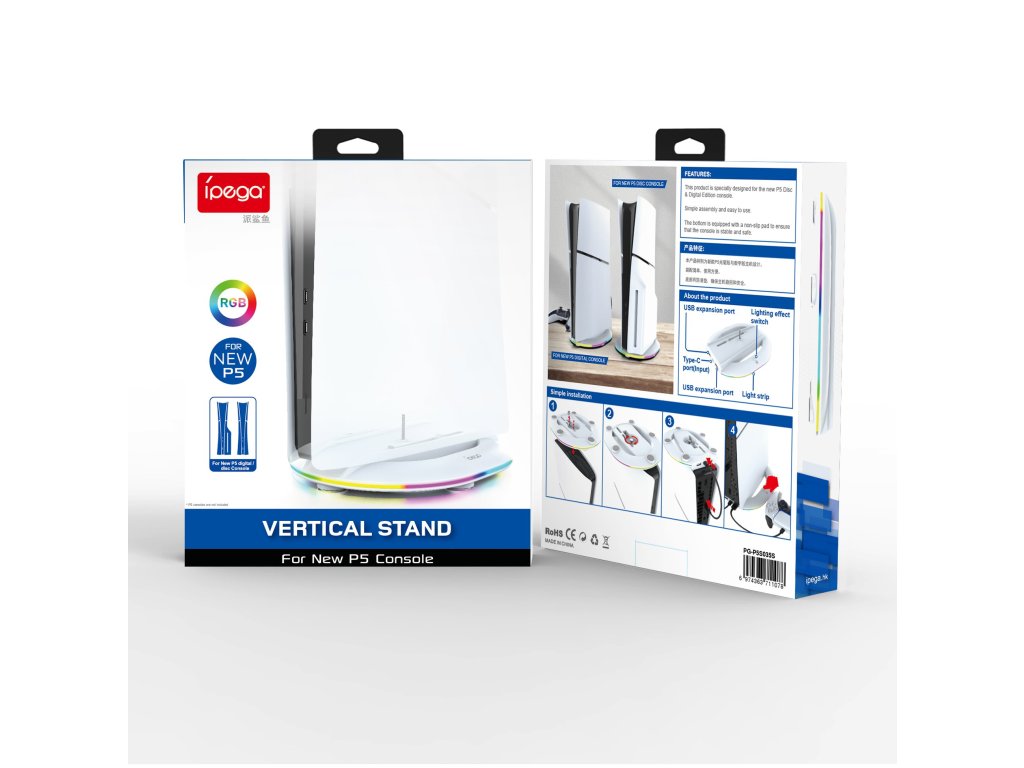 iPega P5S035SA vertikální stojan určený pro Playstation 5 Slim/5 Pro.Stojan je po celém obvodu vybaven RGB podsvícením, které dodá vašemu hernímu doupěti ten správný nádech.