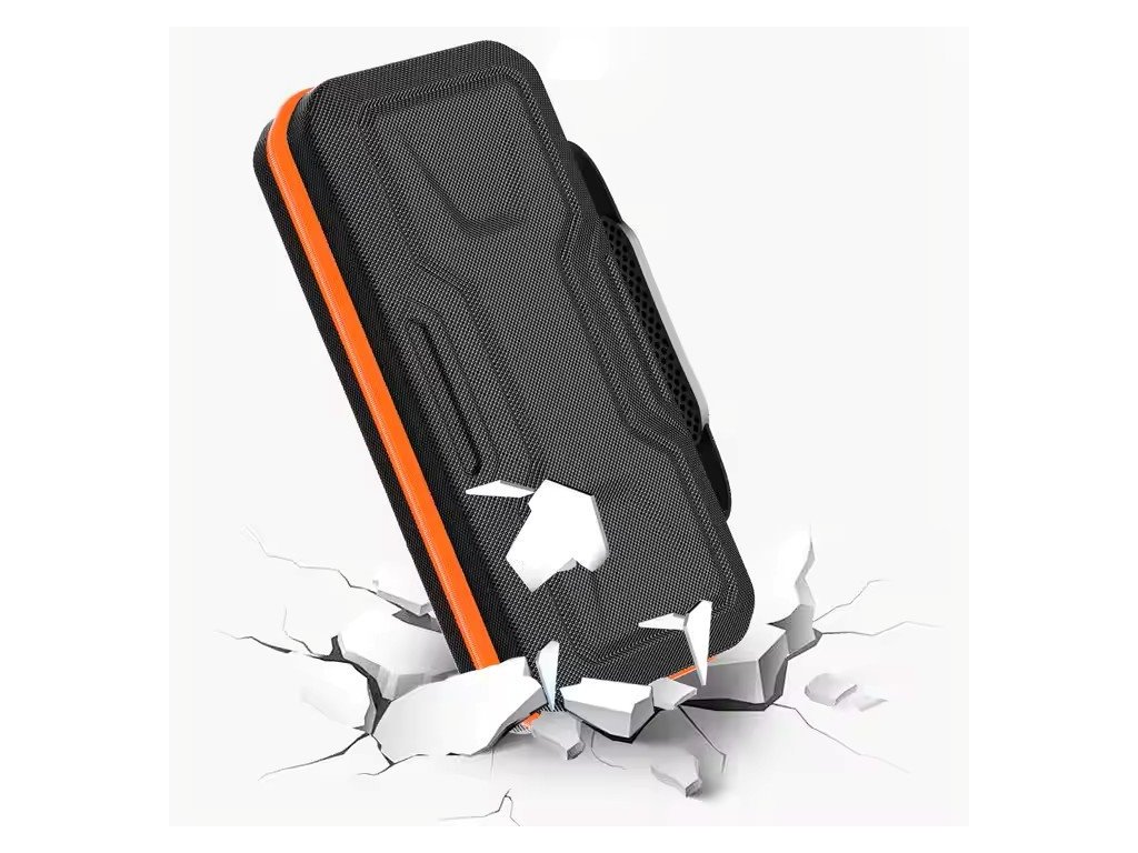 Pouzdro obsahuje praktické poutko na ruku pro snadné přenášení, síťovanou kapsu pro uložení drobného příslušenství a ochrannou přepážku na displej, která zabraňuje poškození obrazovky během přepravy.