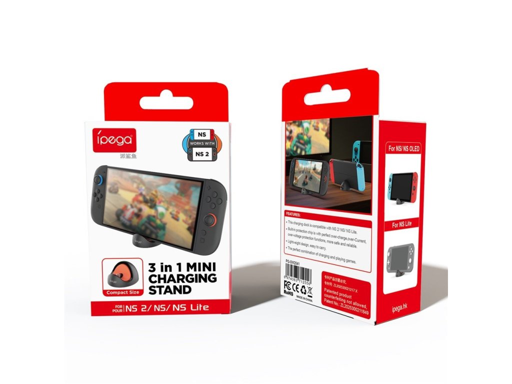 iPega SW2041 Mini Nabíjecí Dok pro Nintendo Switch Lite/Nintendo Switch/Nintendo Switch 2 Black/Red