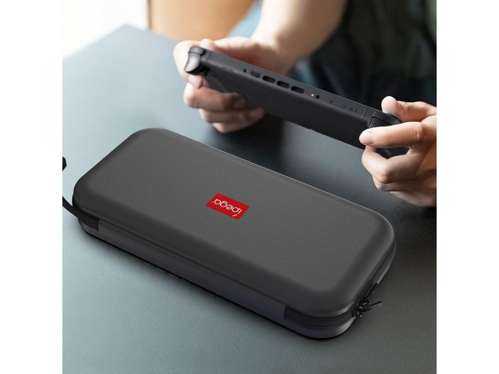 Součástí je praktické poutko na ruku, síťovaná kapsa pro drobné příslušenství, ochranná přepážka pro displej a také prostor pro uložení až 6 herních karet – ideální pro hráče na cestách.
