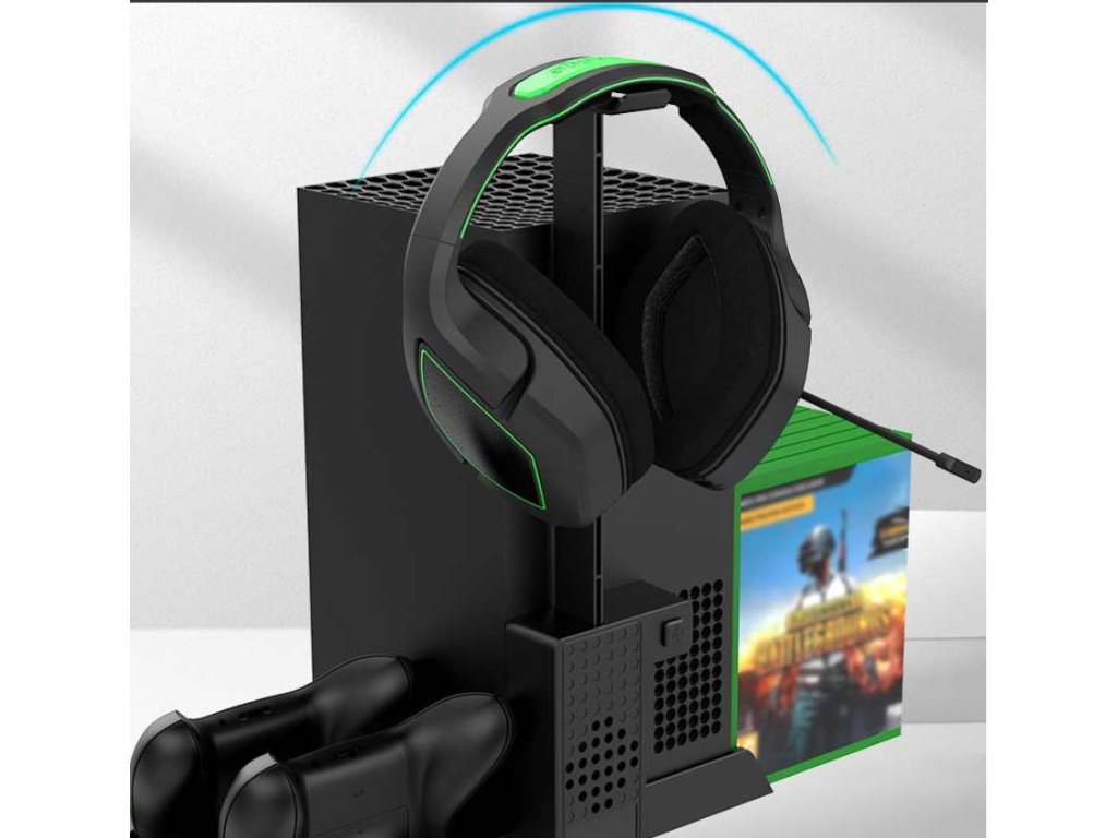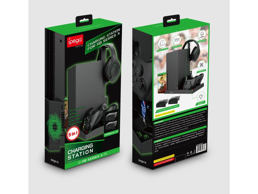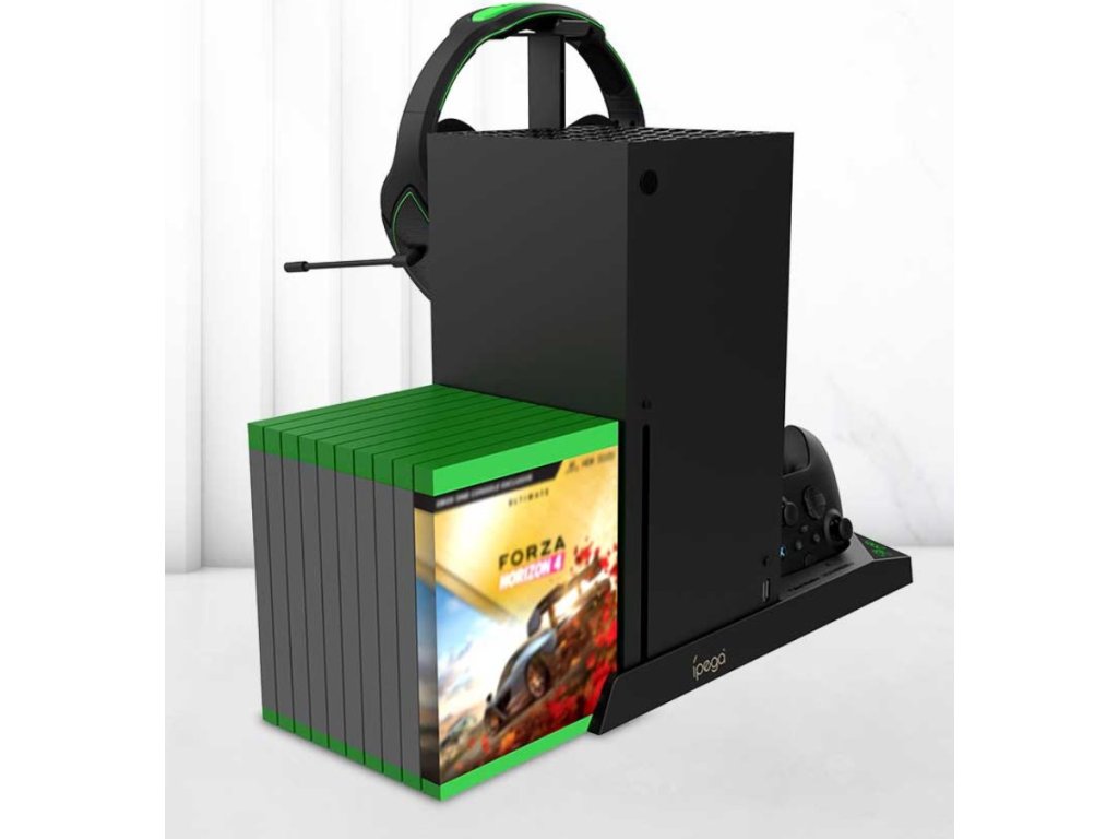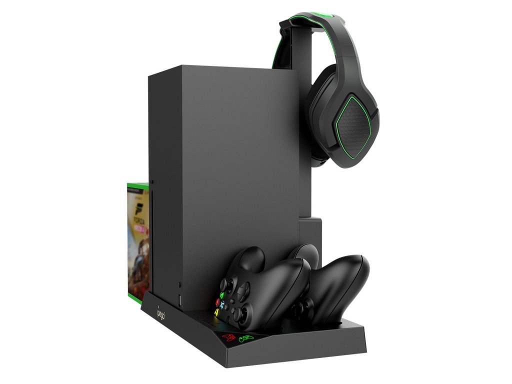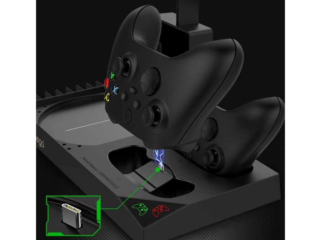 iPega XBX013 dobíjecí stanice a stojan s chlazením pro Xbox X Series se dvěma náhradními bateriemi pro originální Xbox ovladač.Praktický stojan pro váš Xbox s integrovanými ventilátory pro to nejlepší chlazení během dlouhých hodin hraní.