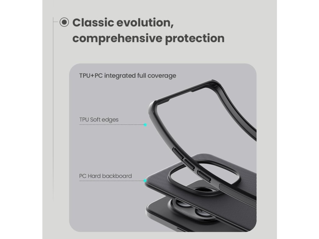 Skládá se z tvrdého a odolného plastu na zadní straně a TPU měkkého plastu na bocích.