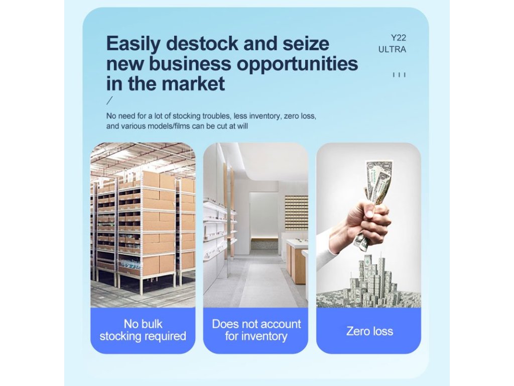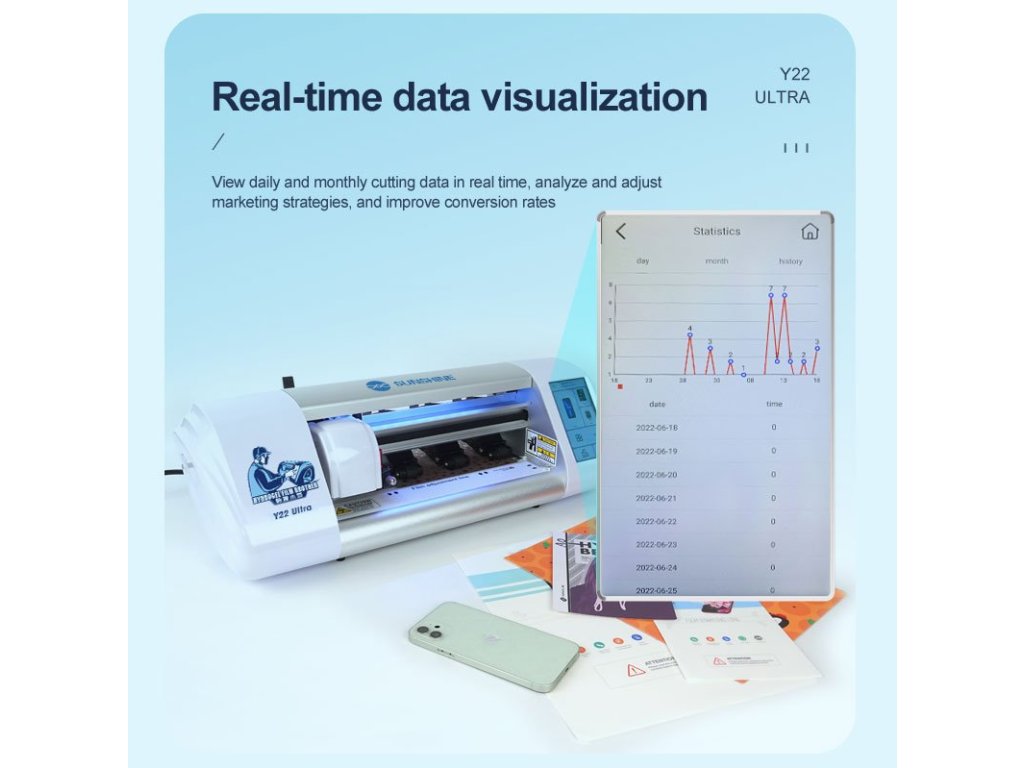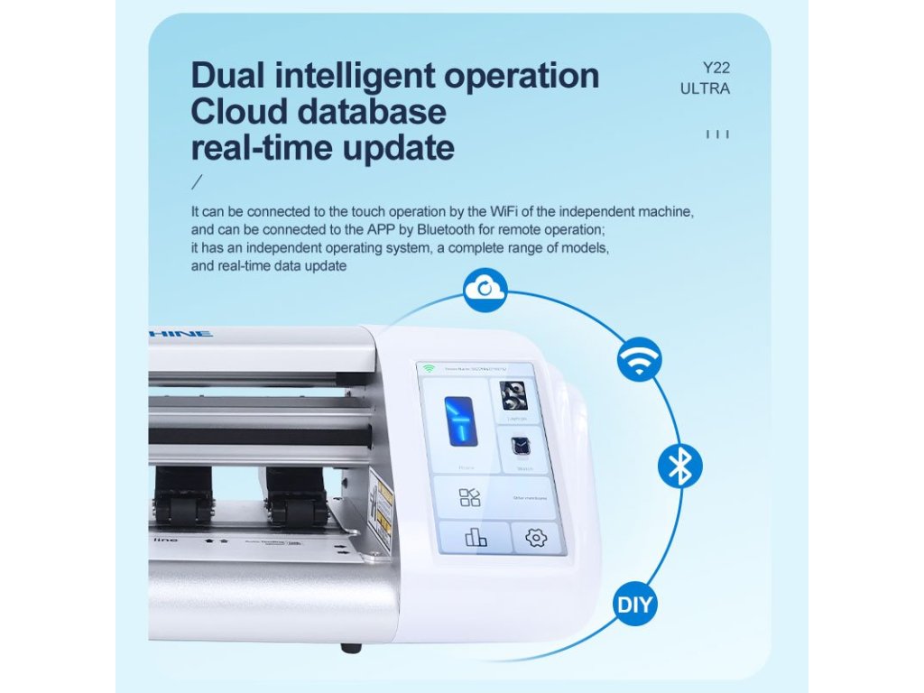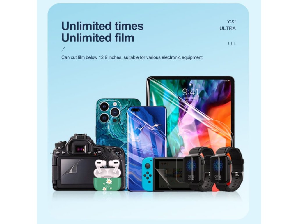 Sunshine Y22 Ultra je řezačka ochranných folií, která vám umožňuje řezat fólie pro různé druhy zařízení.Disponuje širokou online databází šablon, která je průběžné aktualizována.