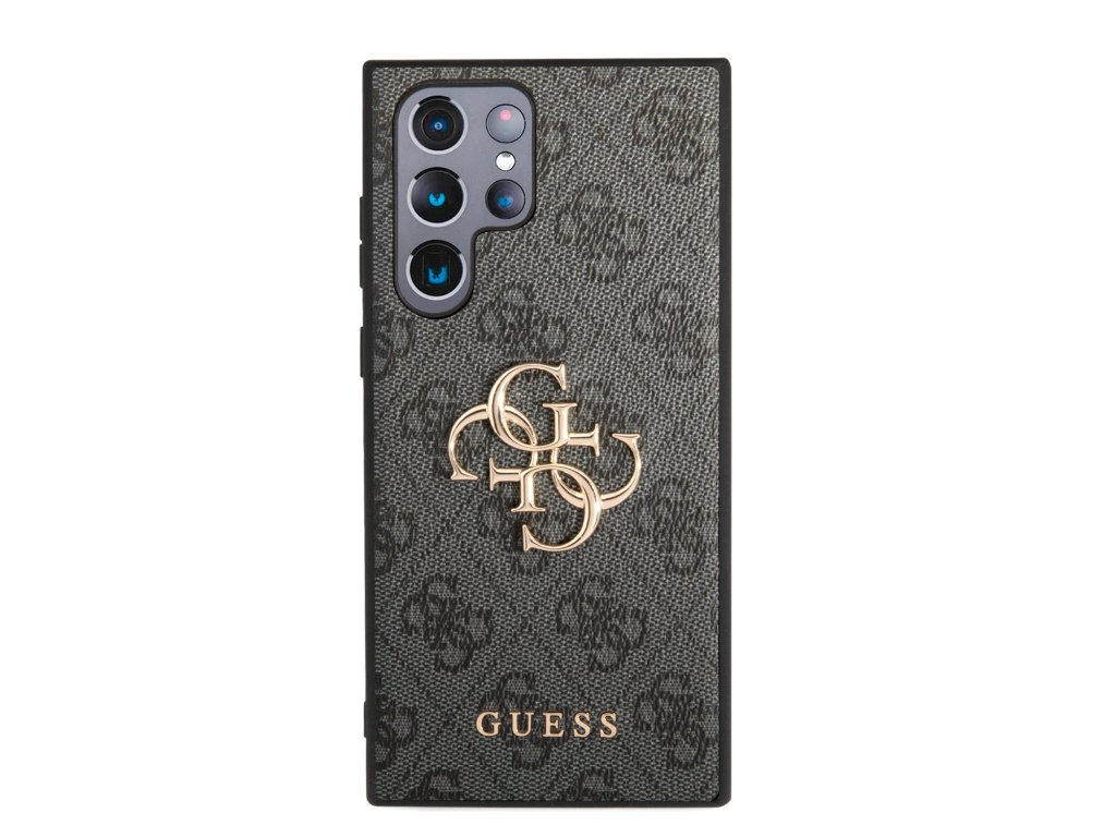 Guess PU 4G Metal Logo Zadní Kryt pro Samsung Galaxy S23 Ultra Grey