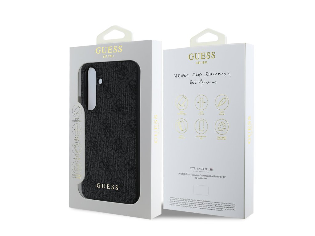 Prémiový zadní kryt Guess 4G Charm se vyznačuje elegantním, charakteristickým 4G vzorem, doplněným o zlaté logo GUESS.Kryt je vyrobený z lehkého a odolného polykarbonátu (PC) s povrchovou úpravou z PU kůže a nabízí tak nejen skvělou ochranu telefonu, ale také pohodlí při používání.