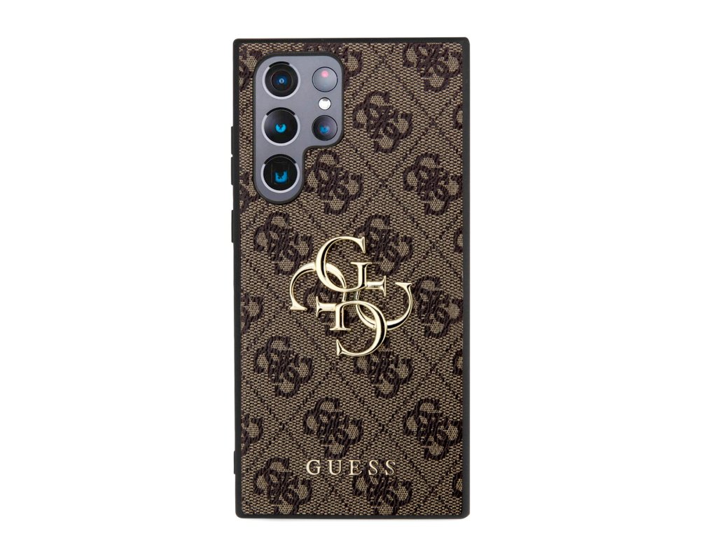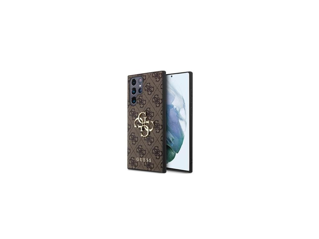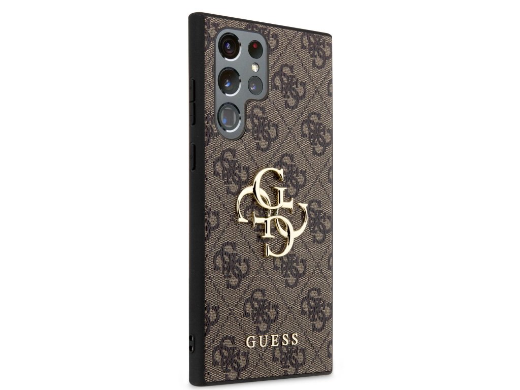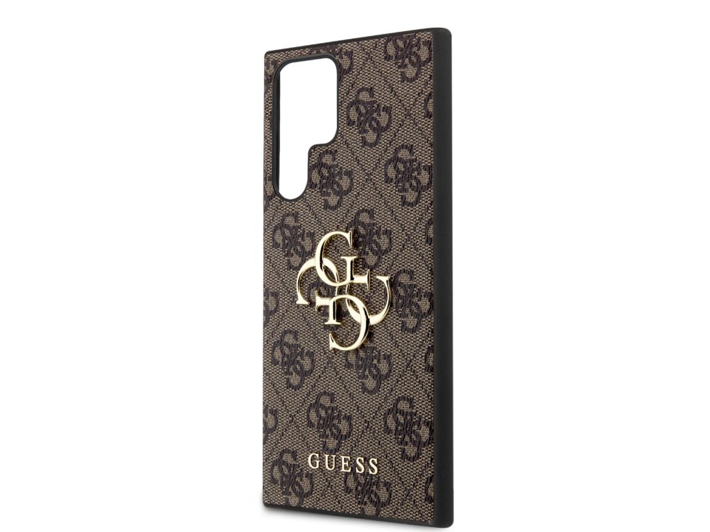 Guess PU 4G Metal Logo Zadní Kryt pro Samsung Galaxy S24 Ultra Brown