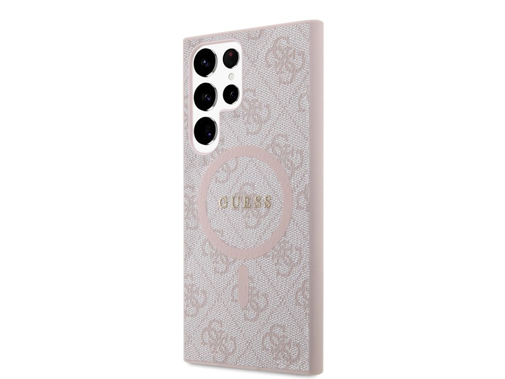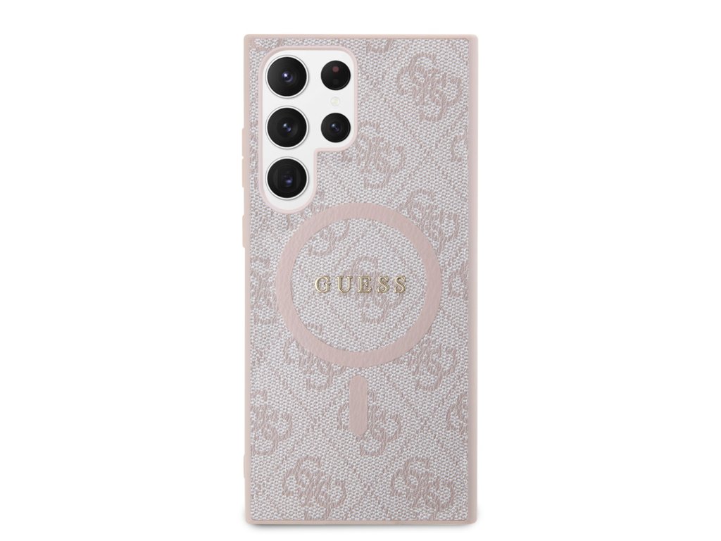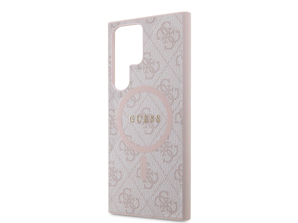 Guess PU Leather 4G Colored Ring MagSafe Zadní Kryt pro Samsung Galaxy S24 Ultra Pink