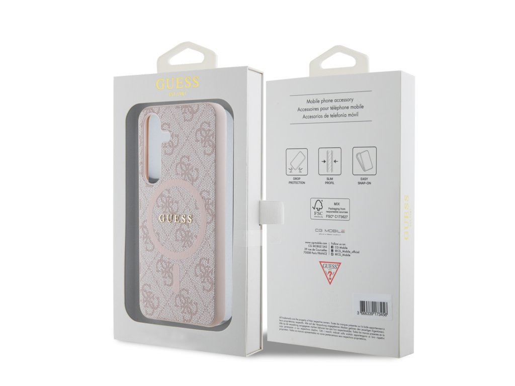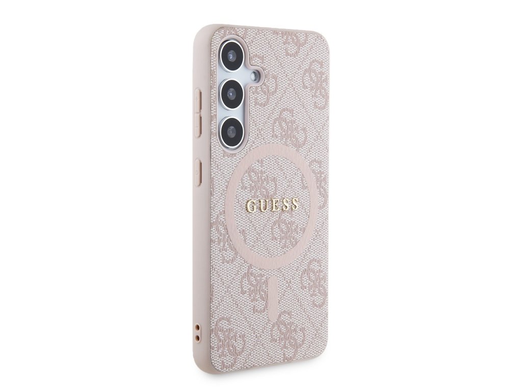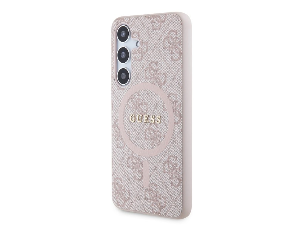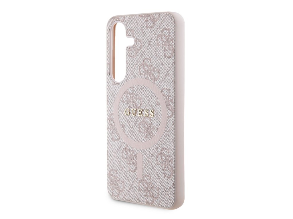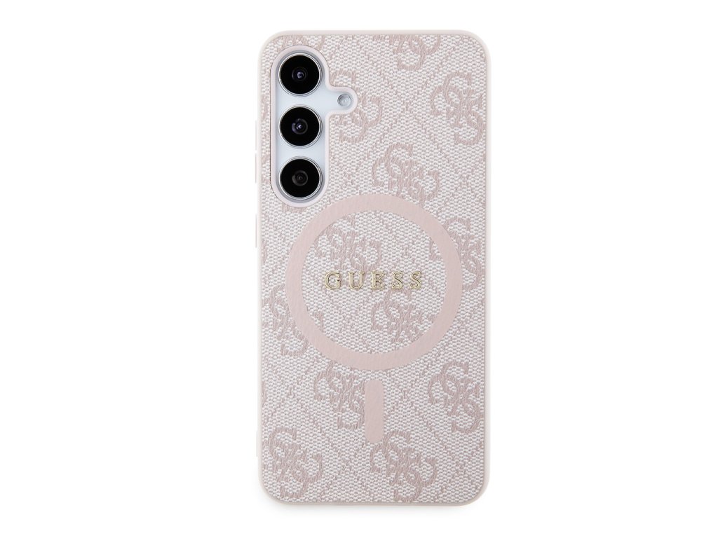 Guess PU Leather 4G Colored Ring MagSafe Zadní Kryt pro Samsung Galaxy S24 Pink