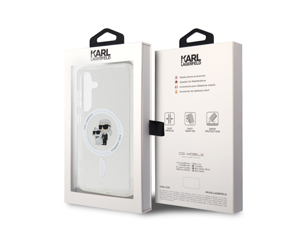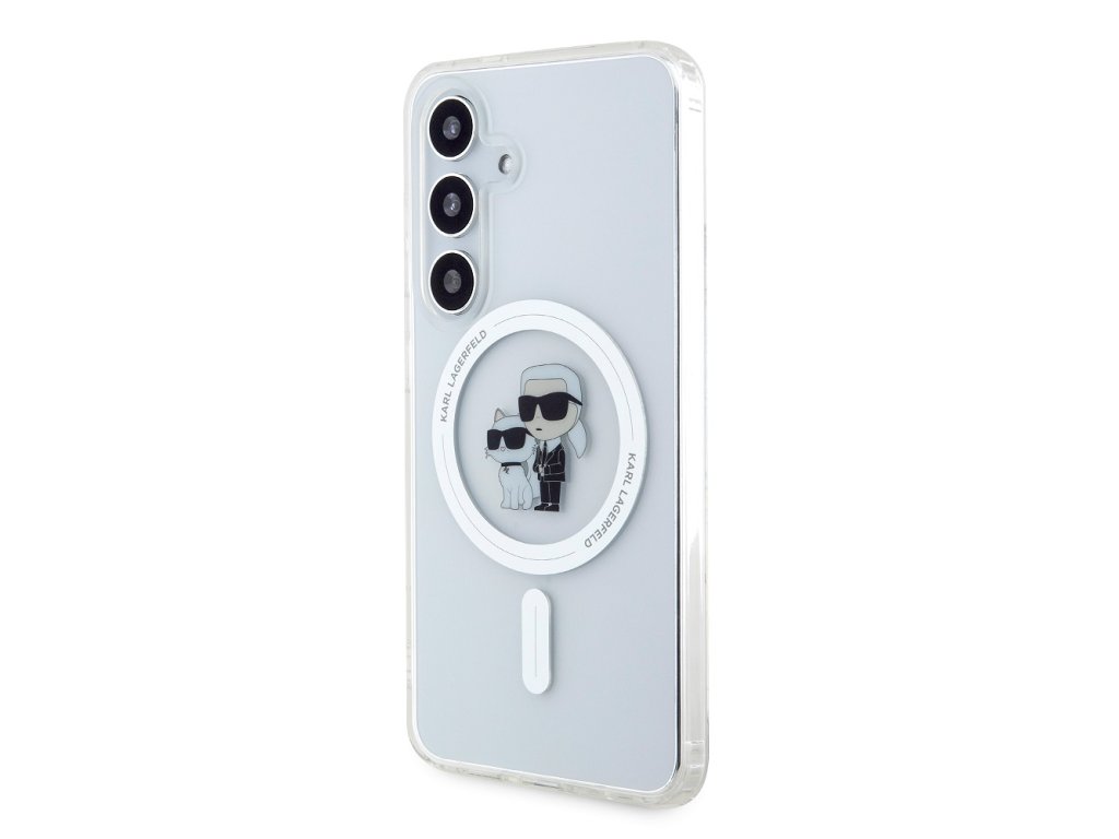 Karl Lagerfeld IML Glitter Karl and Choupette MagSafe Zadní Kryt pro Samsung Galaxy S24 Transparent