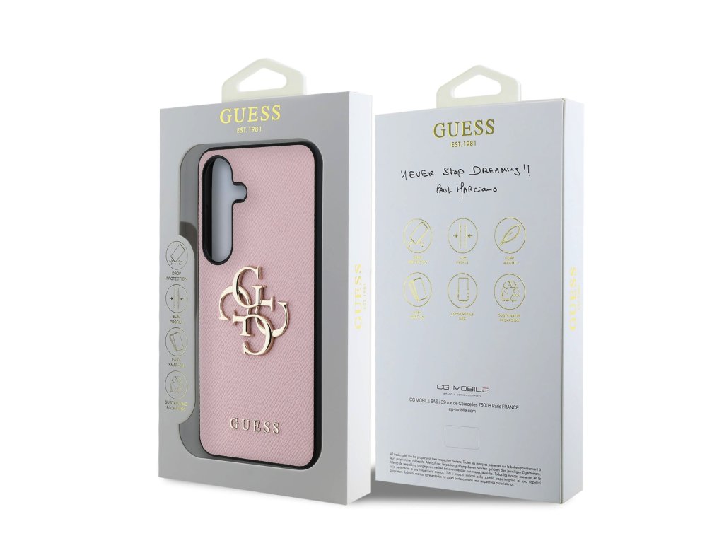 Guess PU Grained 4G Metal Logo Zadní Kryt pro Samsung Galaxy S25 Pink