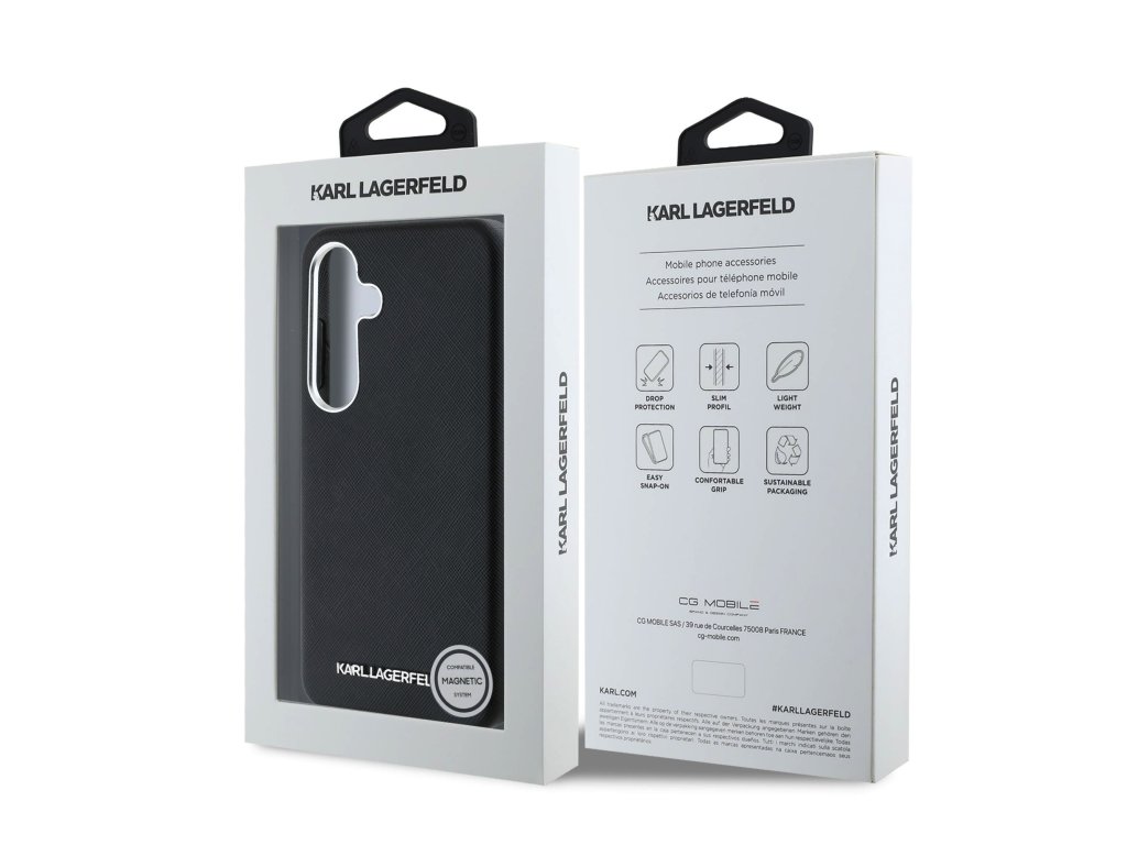 Karl Lagerfeld PU Saffiano Metal Logo and Frame Zadní Kryt pro Samsung Galaxy S25 Black