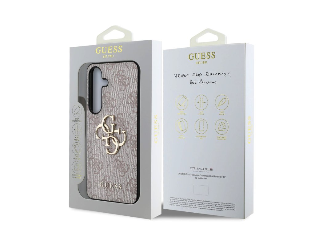 Prémiový zadní kryt Guess PU 4G Metal Logo se vyznačuje elegantním, charakteristickým 4G vzorem, doplněným o logo GUESS.Kryt je vyrobený z lehkého a odolného polyuretanu (PU) s povrchovou úpravou z PU kůže a nabízí tak nejen skvělou ochranu telefonu, ale také pohodlí při používání.