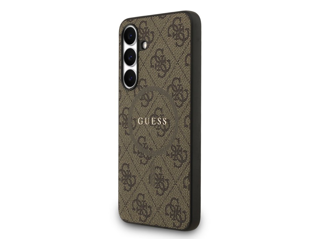 Guess PU Leather 4G Colored Ring MagSafe Zadní Kryt pro Samsung Galaxy S25 FE Brown