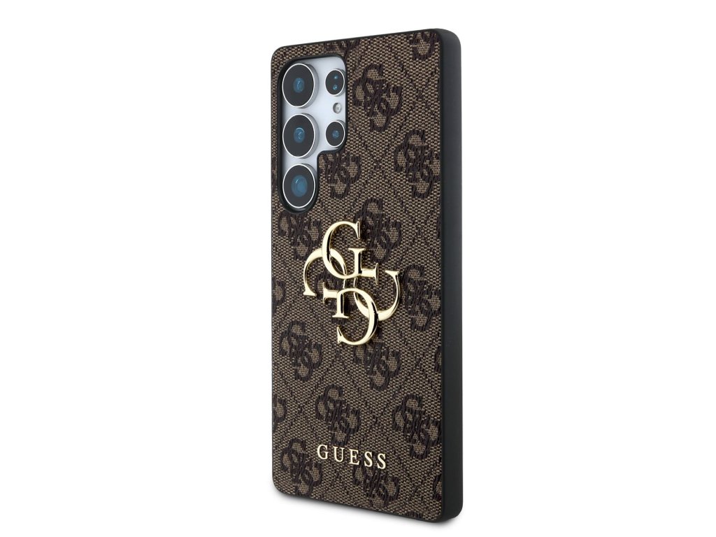 Guess PU 4G Metal Logo Zadní Kryt pro Samsung Galaxy S25 Ultra Brown