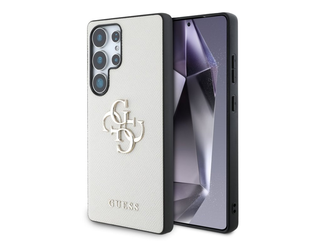 Guess PU Grained 4G Metal Logo Zadní Kryt pro Samsung Galaxy S25 Ultra Beige