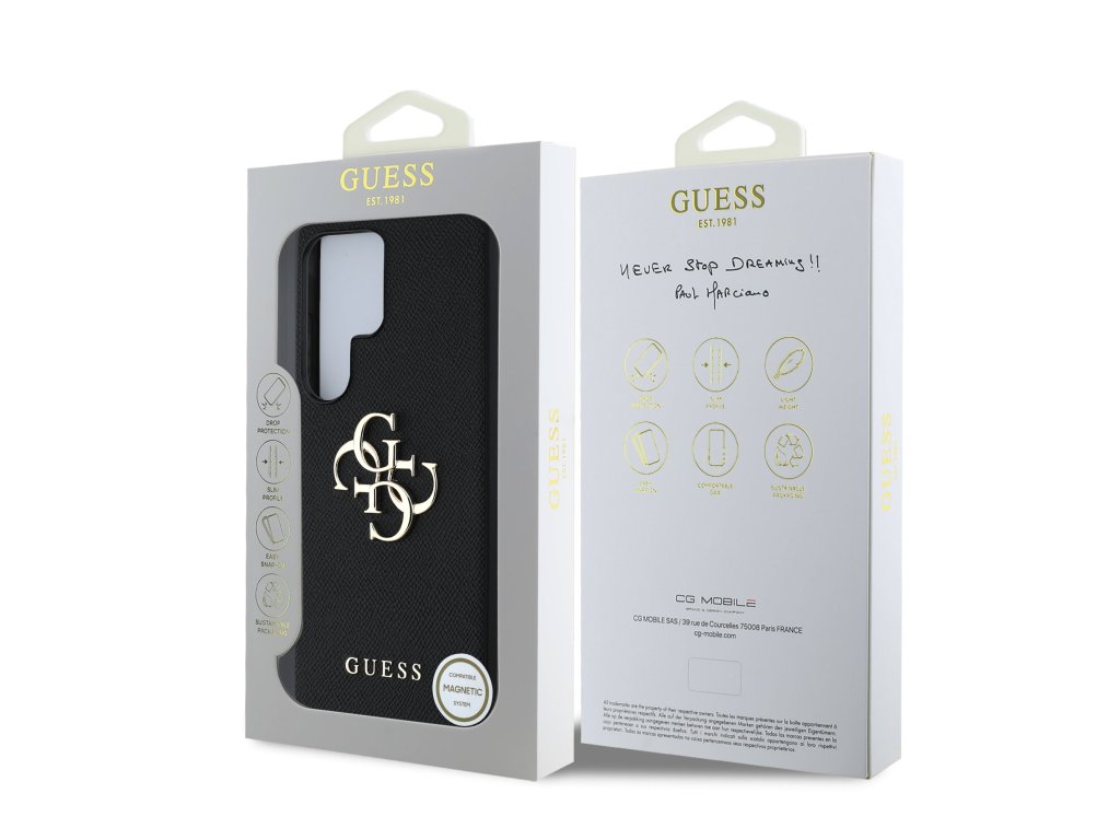 Guess PU Grained 4G Metal Logo Zadní Kryt pro Samsung Galaxy S25 Ultra Black