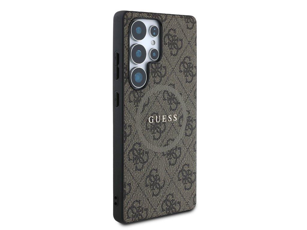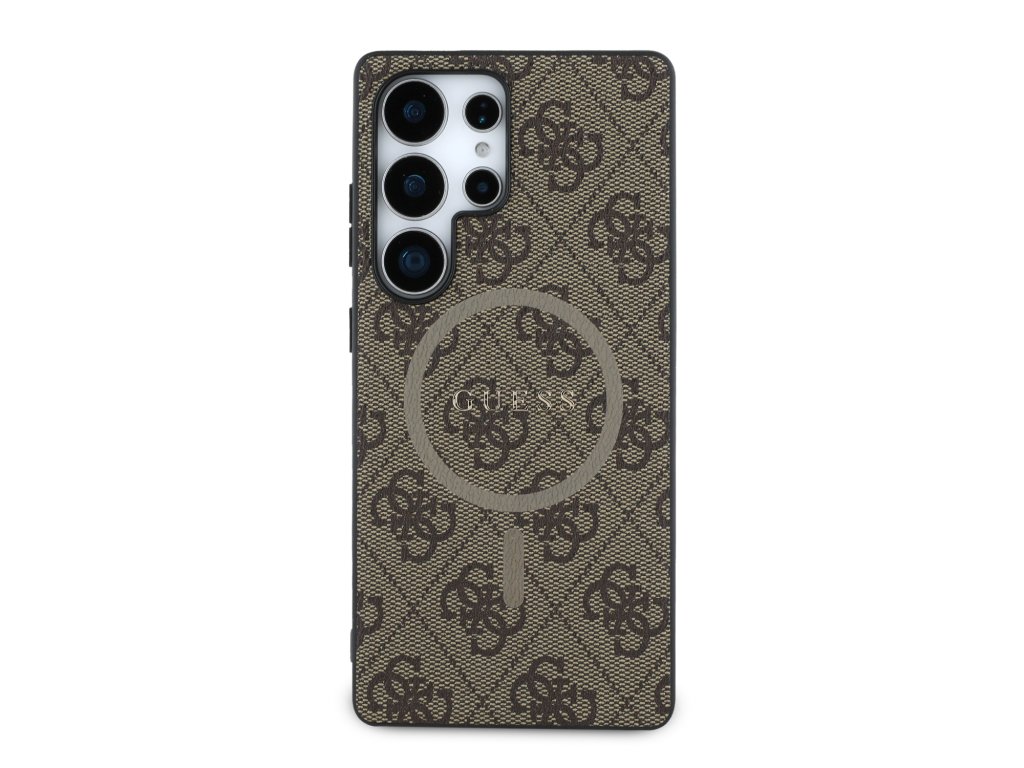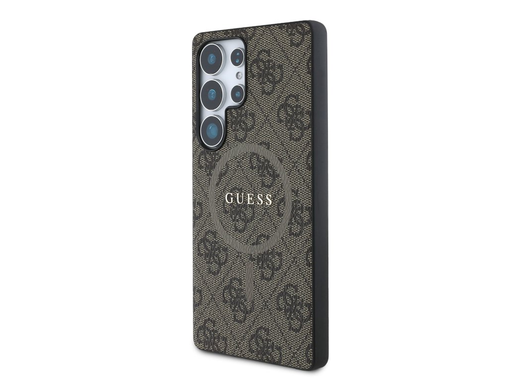 Guess PU Leather 4G Colored Ring MagSafe Zadní Kryt pro Samsung Galaxy S25 Ultra Brown