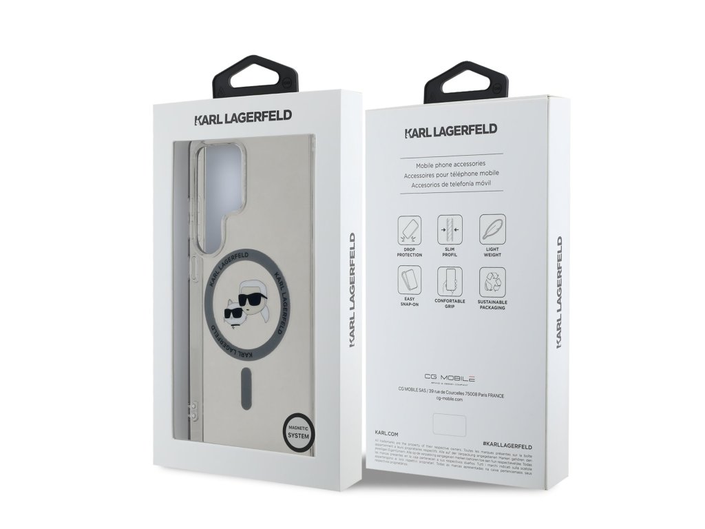 Karl Lagerfeld IML K&CH Heads MagSafe zadní kryt je dokonalý doplněk pro váš telefon i váš outfit, který kombinuje funkčnost a styl v jednom.Tento kryt je vyroben z kombinace pevného PC plastu na zadní straně a TPU měkkého plastu na bocích, což vytváří dokonalou symbiózu odolnosti a pohodlí.