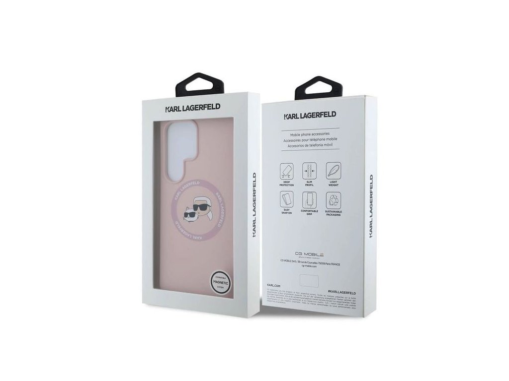 Karl Lagerfeld Liquid Silicone K&CH Heads MagSafe Zadní Kryt pro Samsung Galaxy S25 Ultra Pink