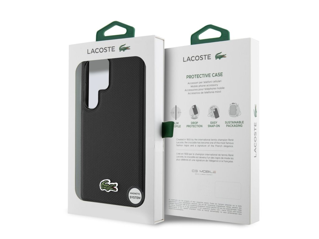 Lacoste Iconic Petit Pique Woven Logo MagSafe zadní kryt je dokonalý doplněk pro váš telefon i váš outfit, který kombinuje funkčnost a styl v jednom.Je vyrobený z lehké a odolného PU materiáliu a nabízí skvělou ochranu a pohodlí při používání. Vnitřní výstelka z jemného mikrovlákna zajišťuje, že váš telefon bude chráněn před poškrábáním a drobnými poškozeními.