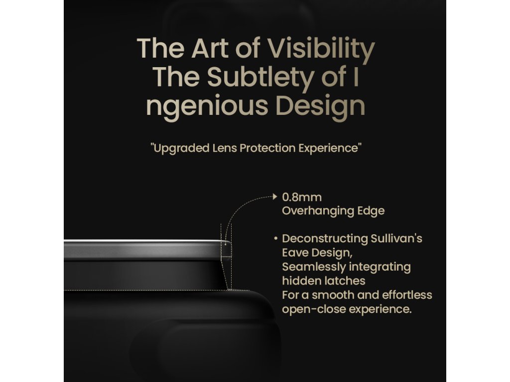 Kreativní design kovového rámu kolem fotoaparátu nejen chrání fotoaparát, ale také slouží jako stojánek.