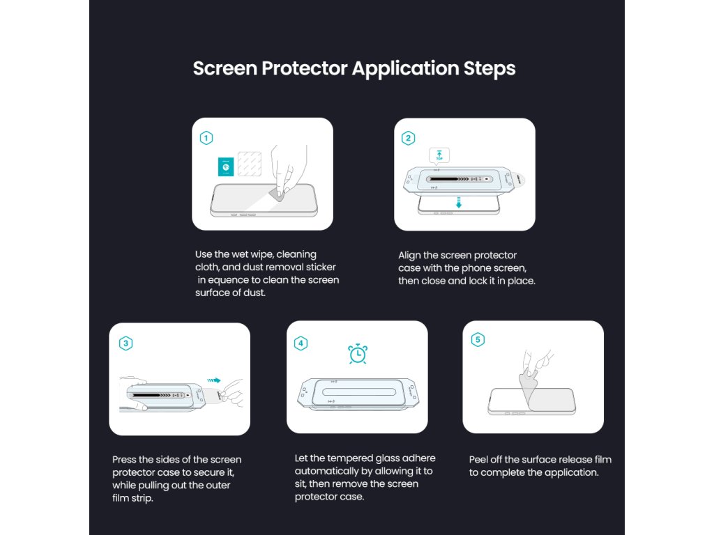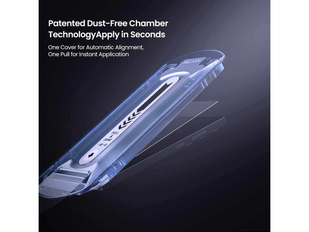 Díky němu můžete snadno nainstalovat tvrzené sklo na displej bez rizika špatného umístění nebo tvorby vzduchových bublin.