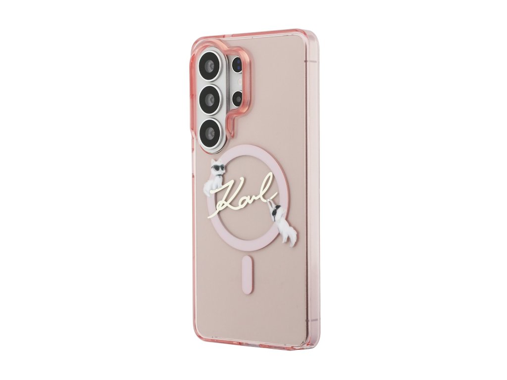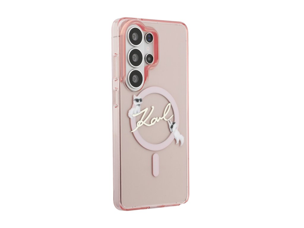 Karl Lagerfeld IML Choupette Karl Script Logo Magnetic Zadní Kryt pro Samsung Galaxy S26 Ultra Pink