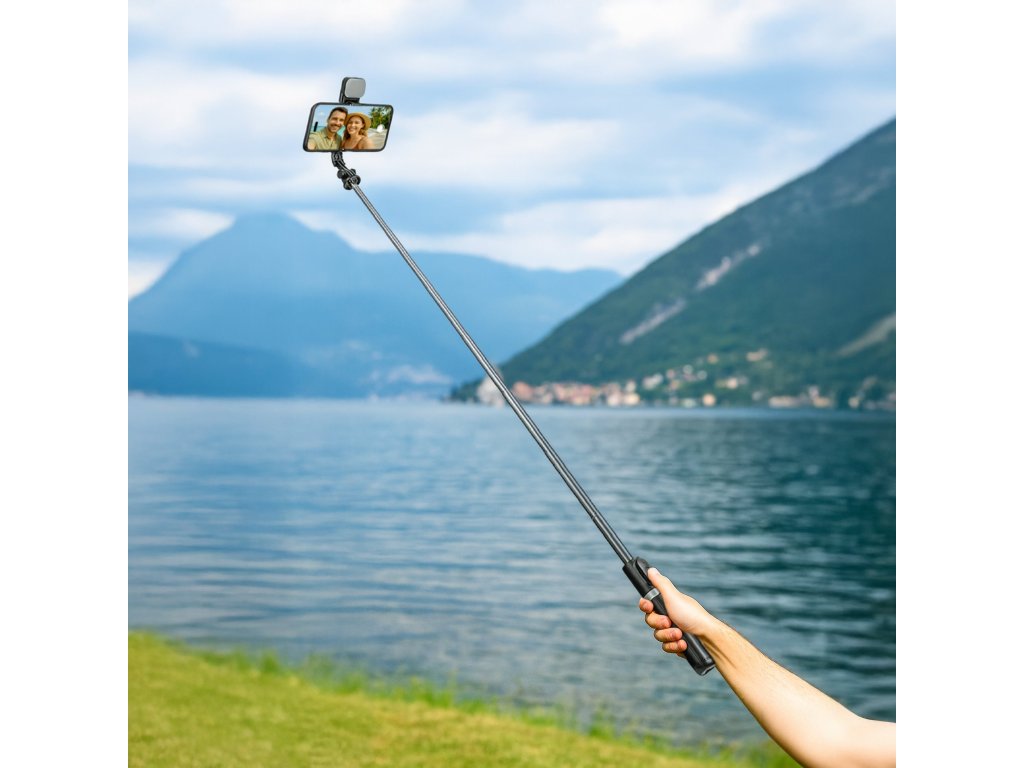 Díky výsuvné tyči, stabilnímu tripodu a odnímatelnému Bluetooth ovladači je skvělý pro tvorbu obsahu, selfies, streamy i krátká videa.