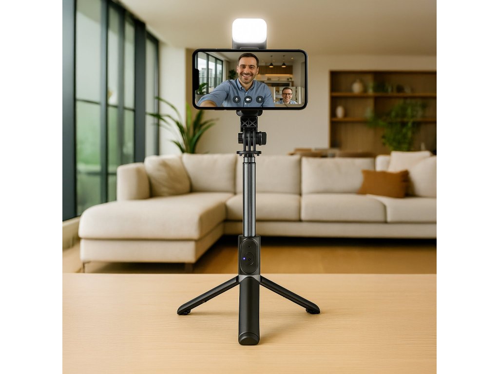 Díky výsuvné tyči, stabilnímu tripodu a odnímatelnému Bluetooth ovladači je skvělý pro tvorbu obsahu, selfies, streamy i krátká videa.