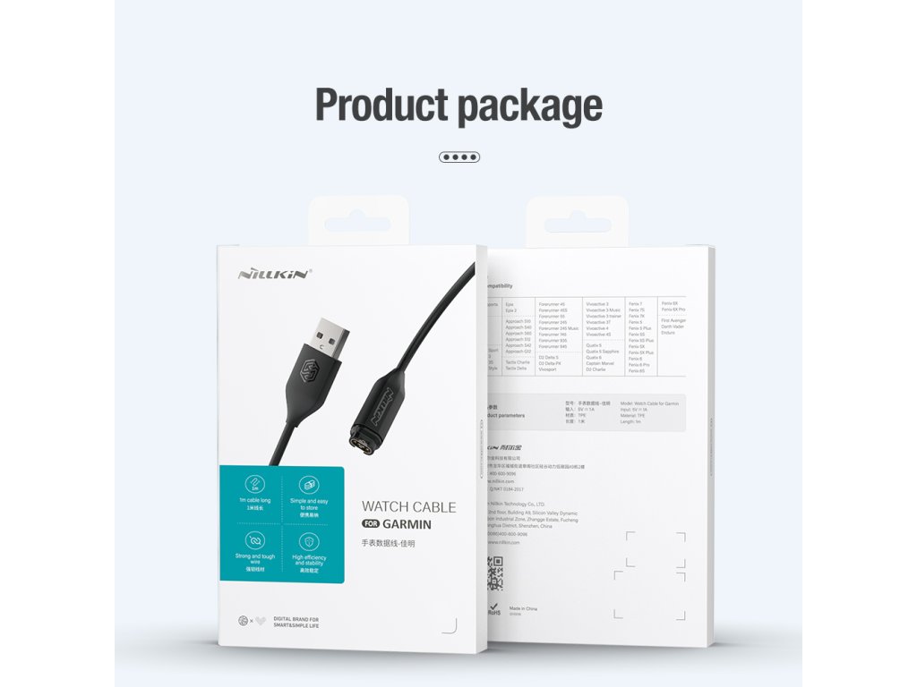 Nillkin USB datový a nabíjecí Kabel pro Garmin Watch dlouhý 1m.Pozlacené spoje účinně zabraňují oxidaci a korozi.