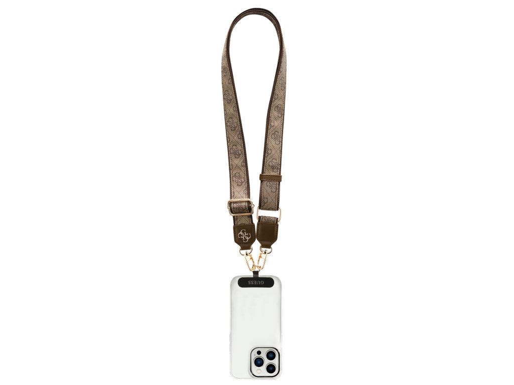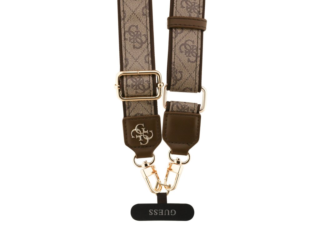 Styl doplňuje viditelné 4G logo Guess a luxusně působící zlaté kovové detaily, které dodávají popruhu prémiový vzhled.