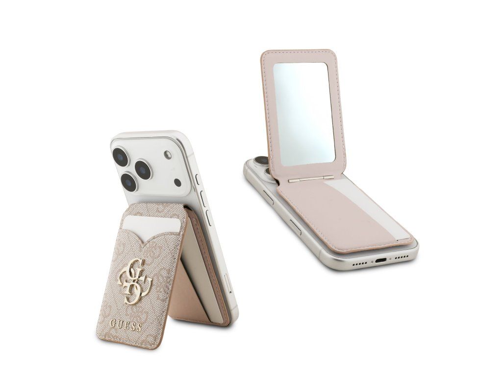 Guess PU 4G Mirror MagSafe Cardslot Peněženka se Stojanem Pink