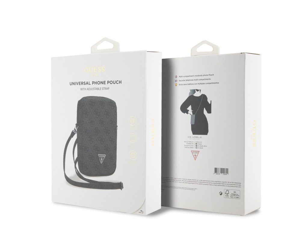 Guess PU 4G Triangle Logo Phone bag se zipem je perfektní taška přes rameno,Je vyrobena z kvalitní PU kůže, vnější část zaujme jemně texturovaným povrchem, kde neschází logo značky Guess.