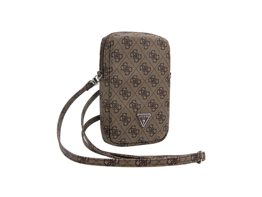 Guess PU 4G Triangle Logo Taška na Telefon se Zipem Brown