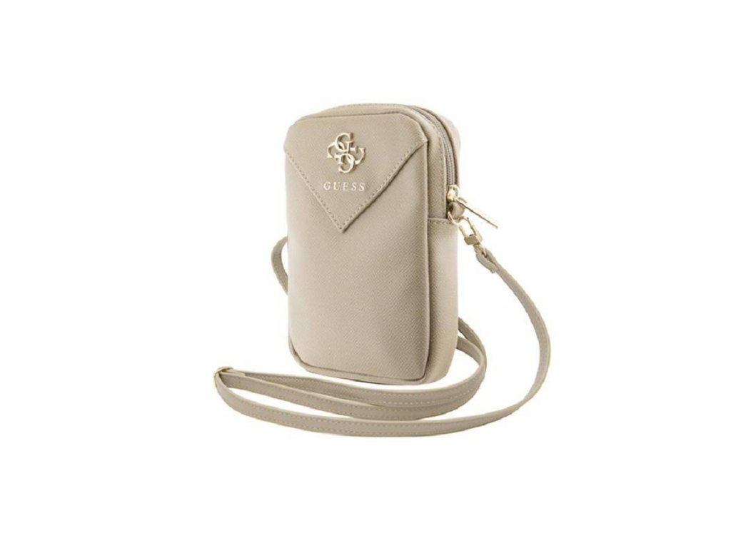 Guess PU Grained 4G Metal Logo Taška na Telefon se Zipem Gold