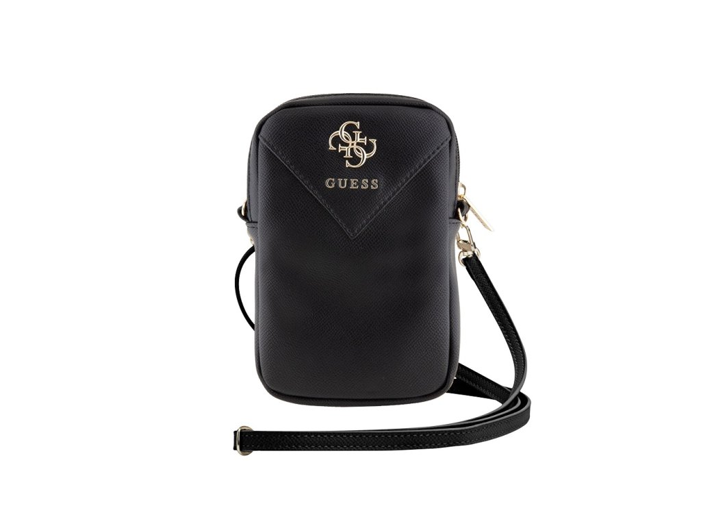 Guess PU Grained 4G Metal Logo Taška na Telefon se Zipem Black