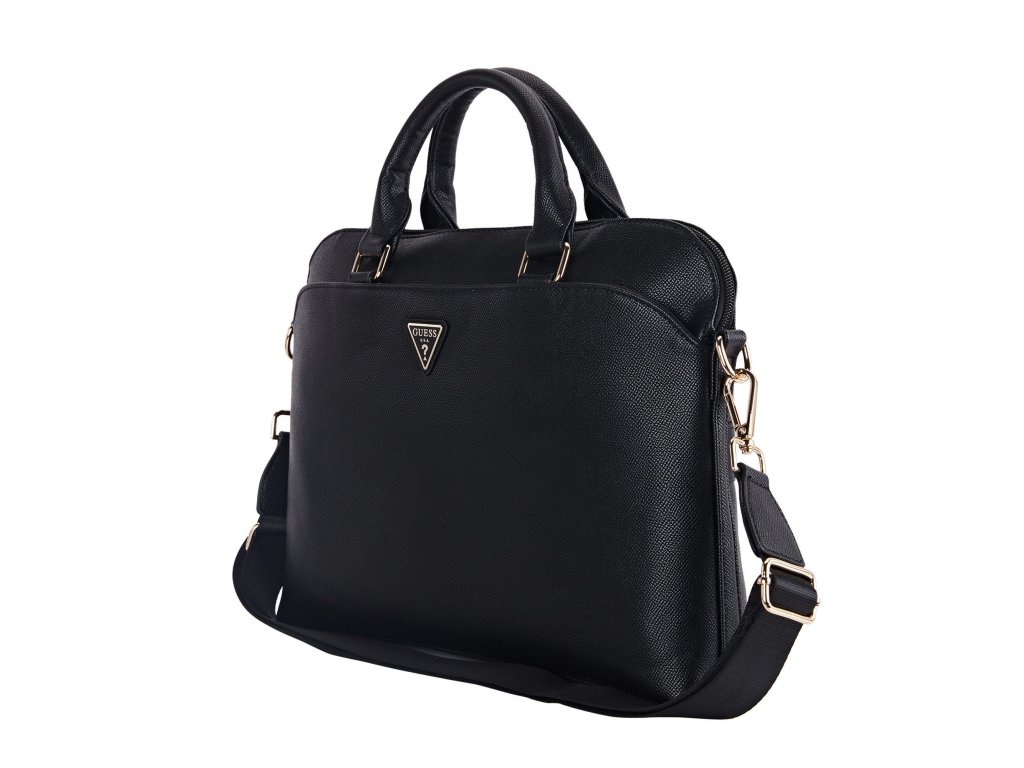 Guess PU 4G Triangle Logo je perfektní taška pro notebook s úhlopříčkou displeje 15-16"Taška je vyrobená z kvalitní PU kůže. Vnější část zaujme jemně texturovaným povrchem, kde neschází výrazné triangle logo značky Guess.