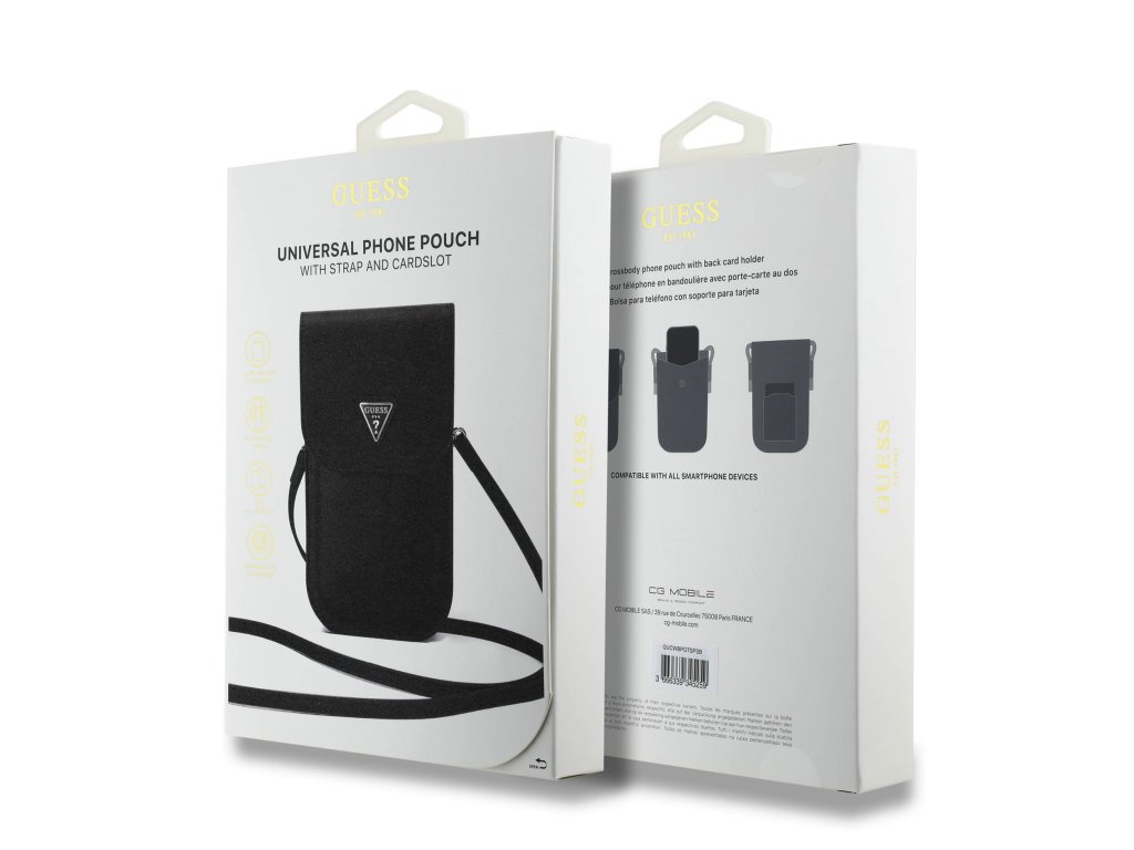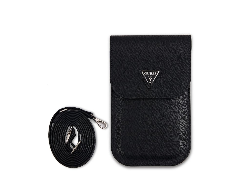 Guess PU Grained Triangle Logo Taška na Telefon Black