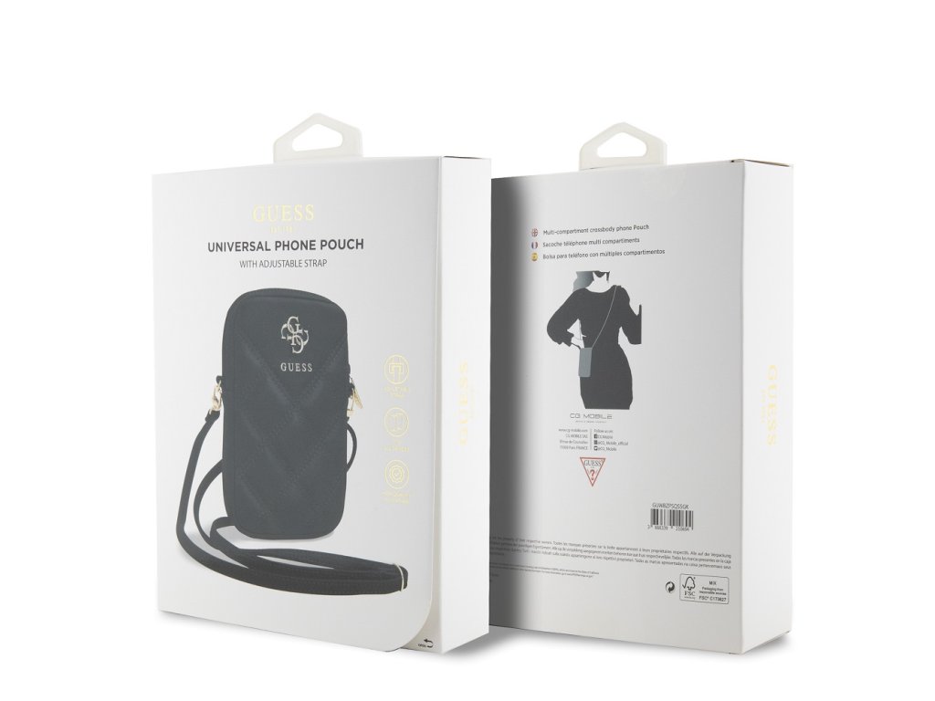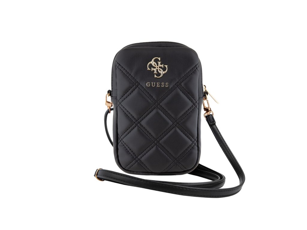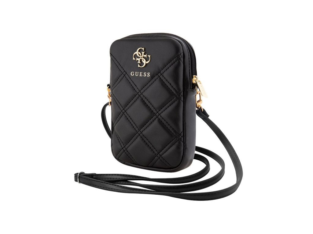 Guess PU Quilted 4G Metal Logo Taška na Telefon se Zipem Black