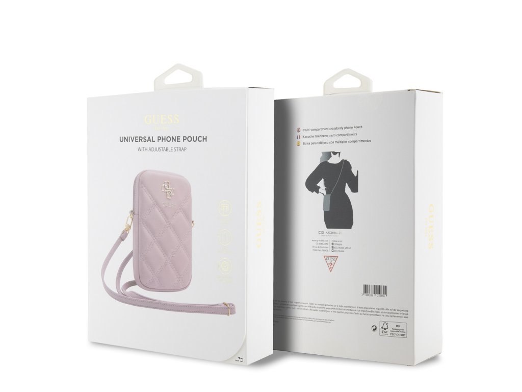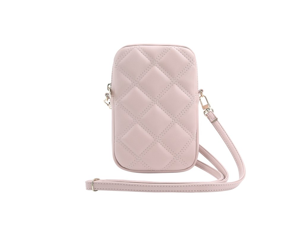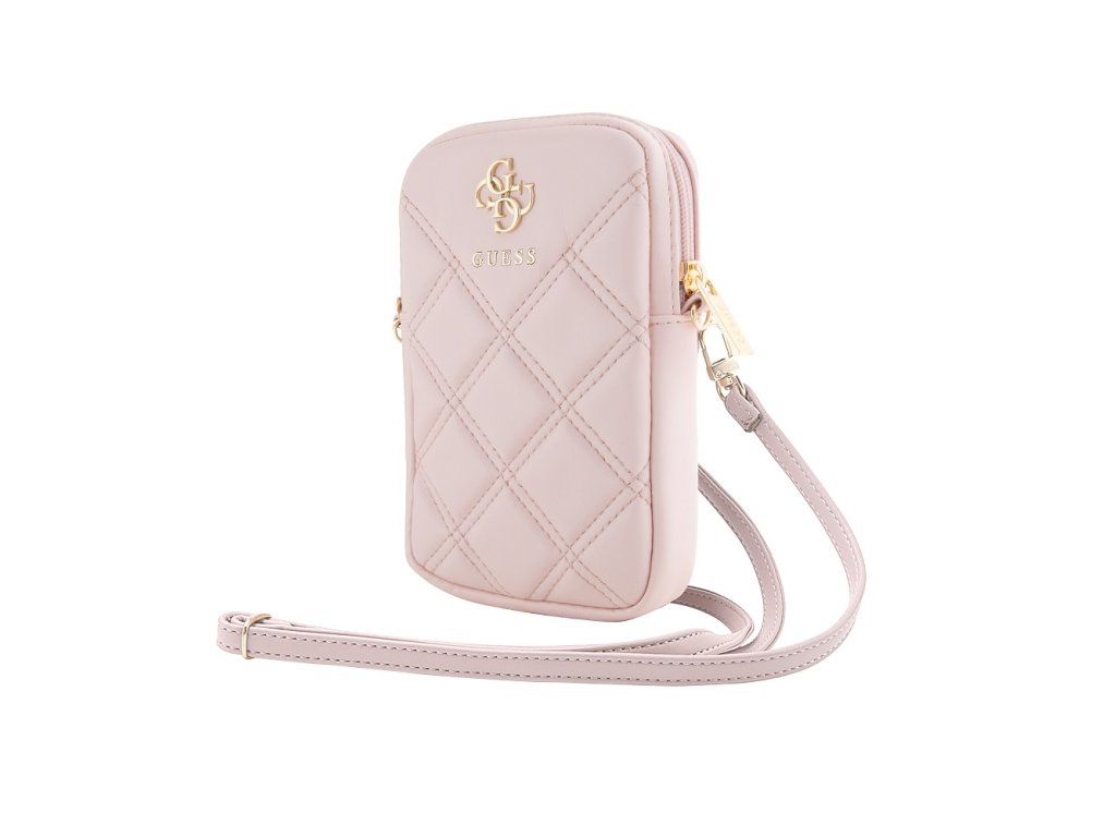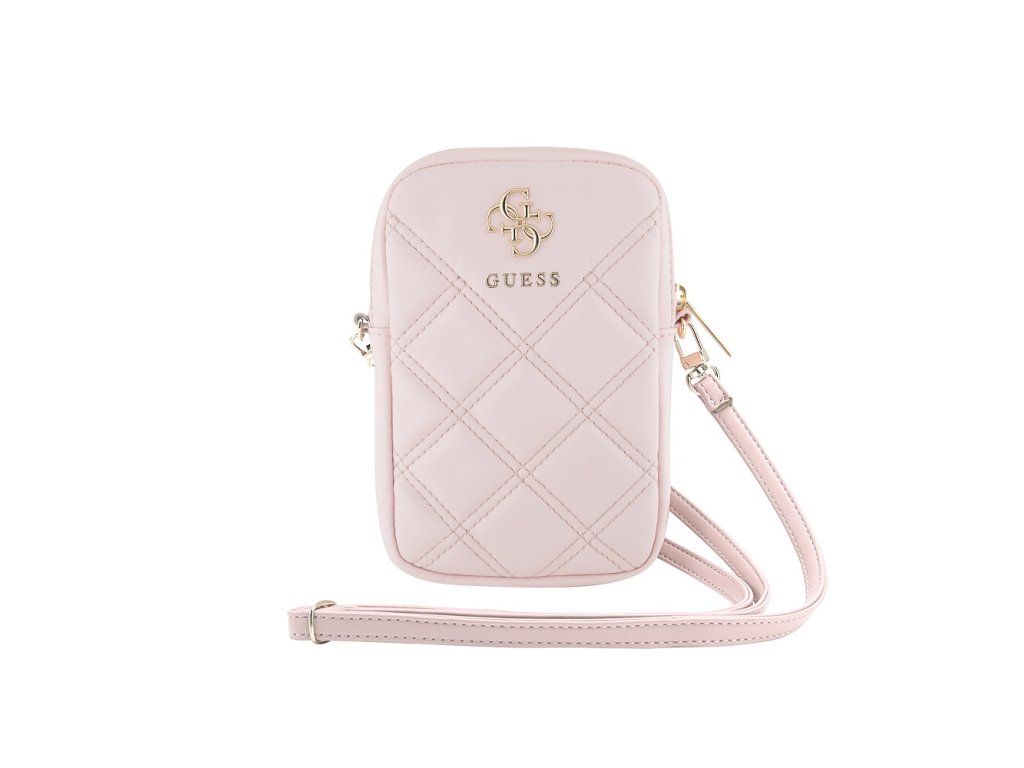 Guess PU Quilted 4G Metal Logo Taška na Telefon se Zipem Pink