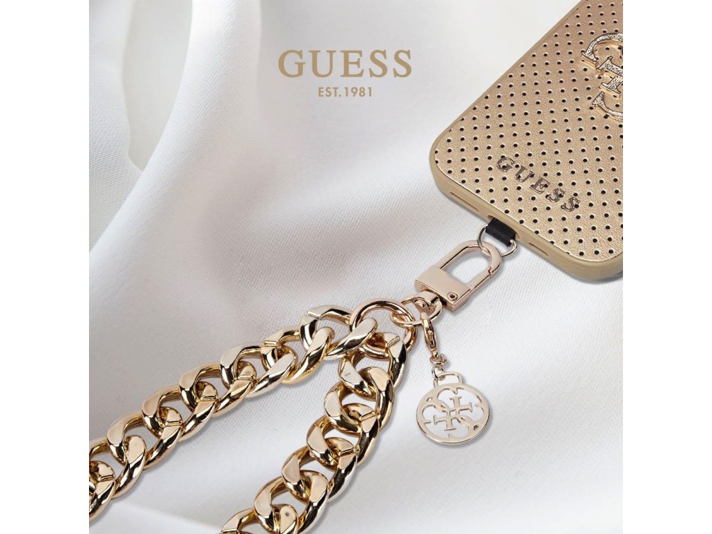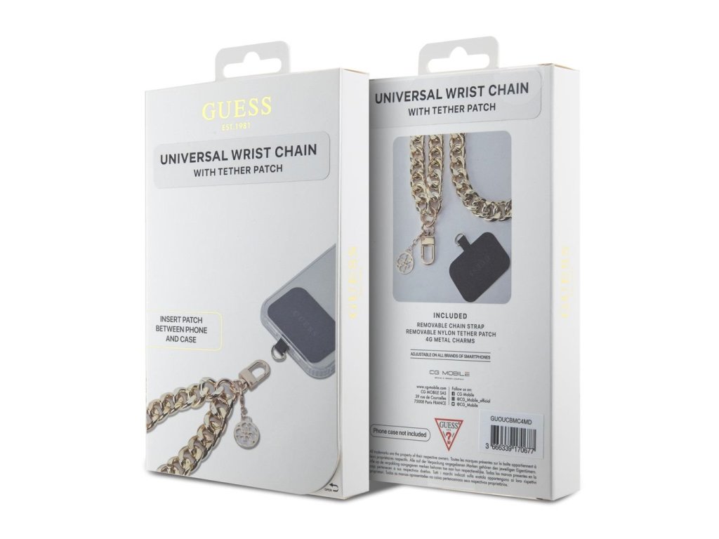 Guess Univerzální Popruh na Ruku 4G Charm je ideálním doplňkem pro ty, kteří hledají spojení elegance, stylu a funkčnosti. Je kompatibilní s většinou smartphonů a díky univerzálnímu použití a snadné instalaci ho můžete využít v různých situacích. Tento popruh vám umožní nosit své zařízení bezpečně a zároveň vypadat skvěle.Robustní řetěz s velkými články vypadá elegantně a současně je velmi praktický. Zlaté detaily, jako je karabinka a přívěsek s logem Guess, dodávají popruhu sofistikovaný nádech. Snadno ho připojíte k vašemu telefonu a můžete ho začít okamžitě používat.