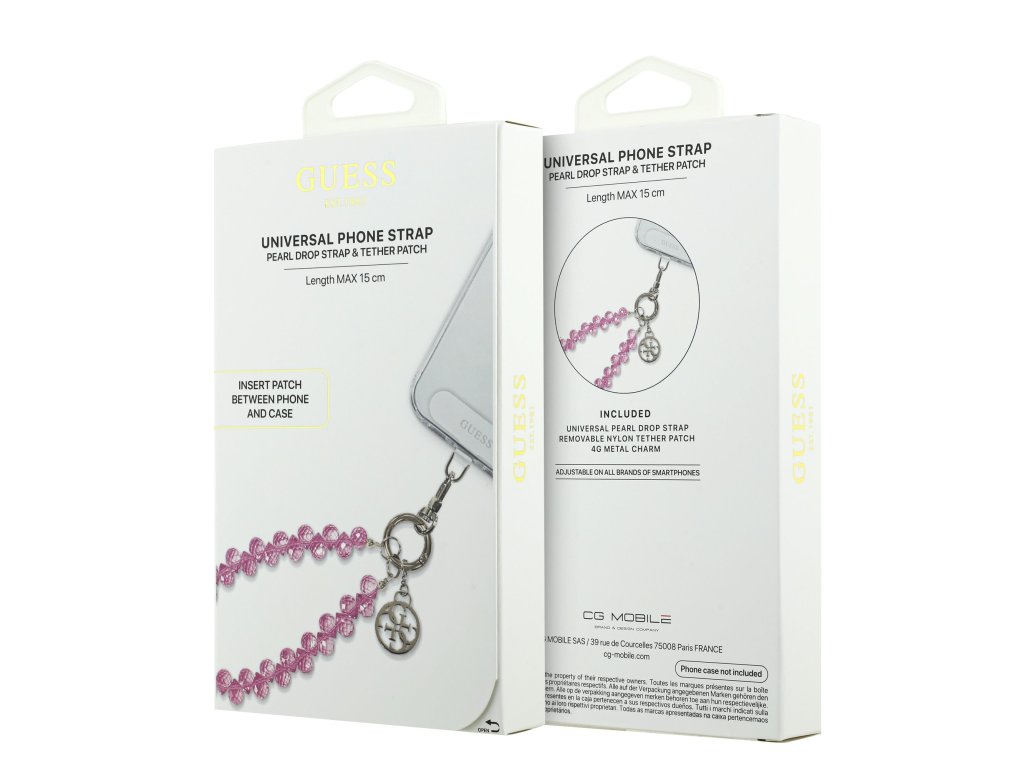 Guess Univerzální Popruh na Ruku 4G Crystals Charm je ideálním doplňkem pro ty, kteří hledají spojení elegance, stylu a funkčnosti.Je kompatibilní s většinou smartphonů a díky univerzálnímu použití a snadné instalaci ho můžete využít v různých situacích.