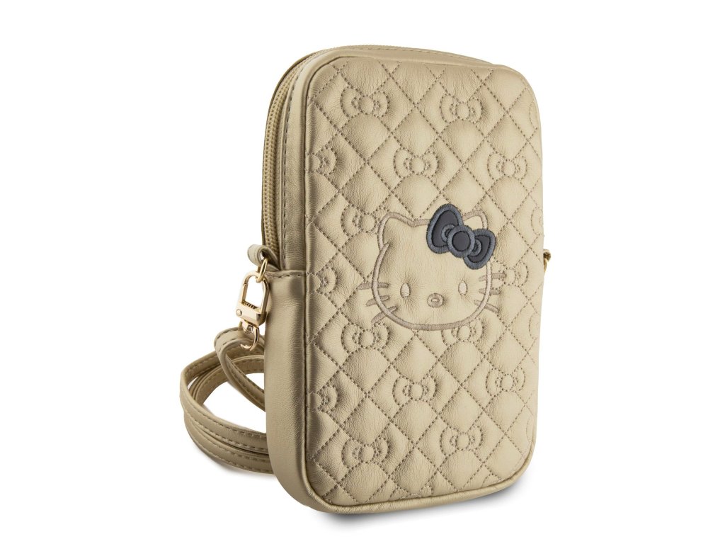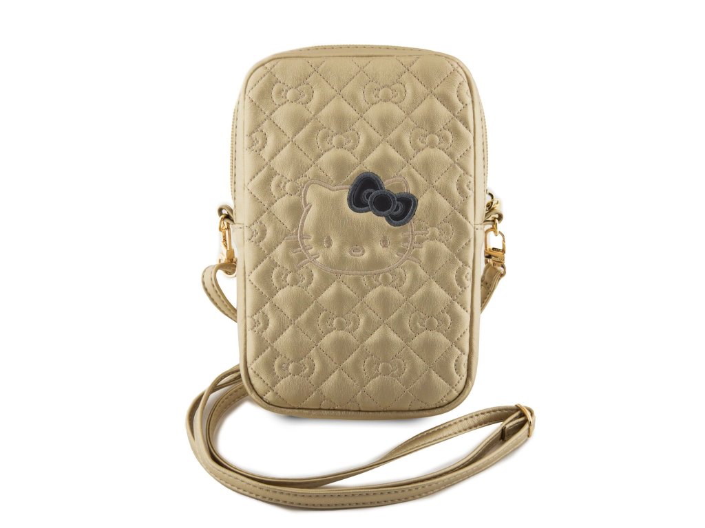 Hello Kitty PU Leather Quilted Pattern Kitty Head Logo Taška na Telefon Gold