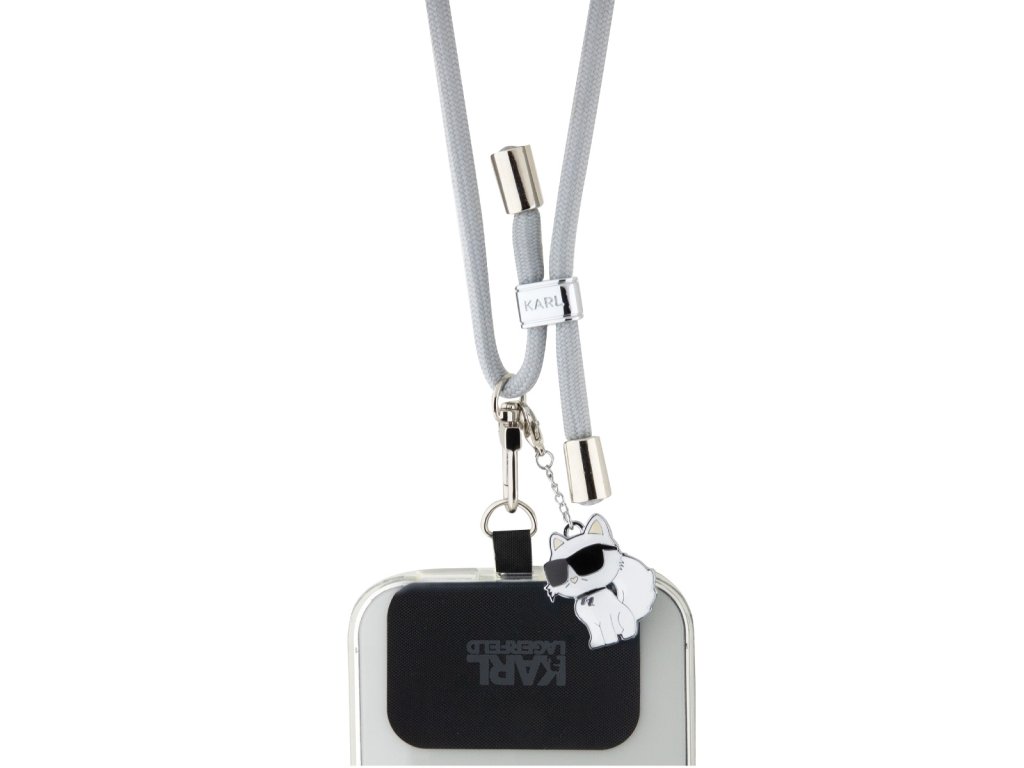 Karl Lagerfeld Universal Crossbody Popruh Cord and Choupette Pins Grey