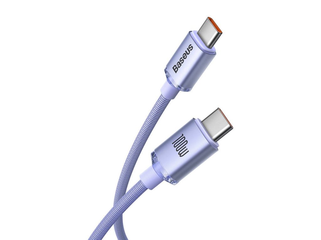 Baseus CAJY000605 Crystal Shine Series Datový Kabel USB-C - USB-C 100W 1,2m Purple