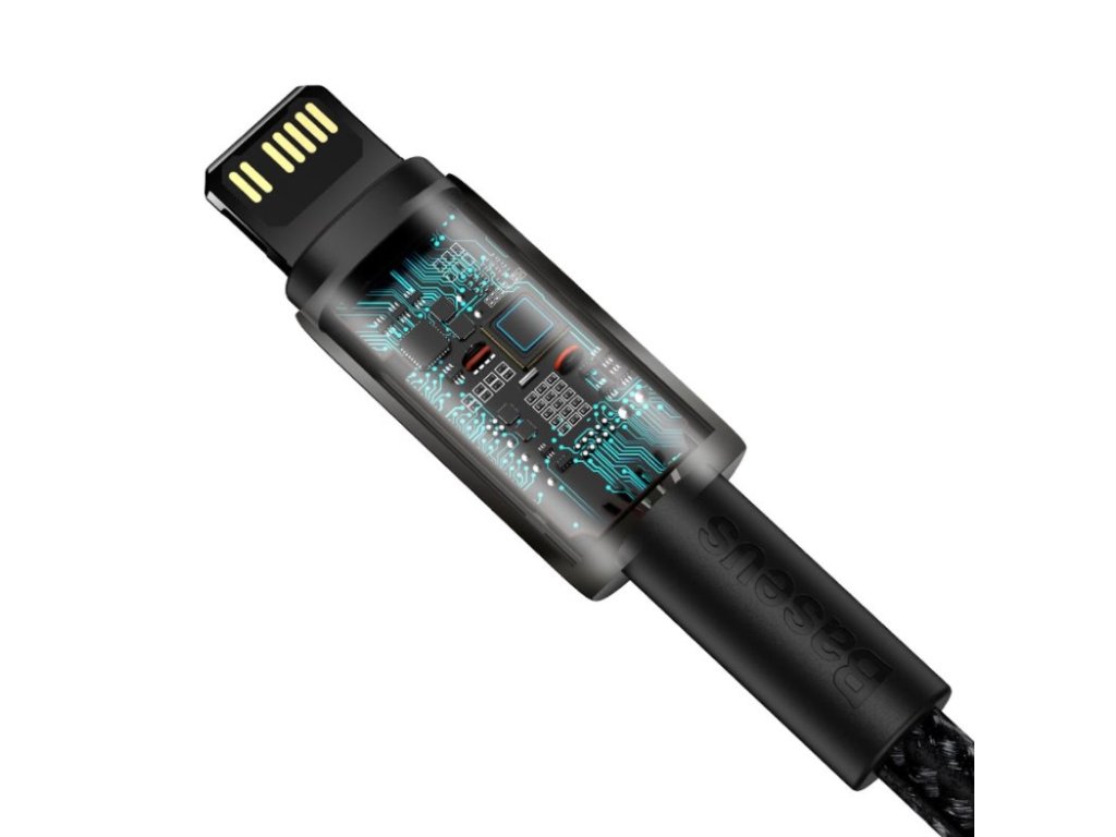 Baseus Tungsten Gold kabel pro nabíjení Lightning zařízení z USB-C nabíječky nebo konektoru notebooku.Kabel je opletený pro maximální pevnost a dlouhou životnost, podporuje až 20W nabíjení.