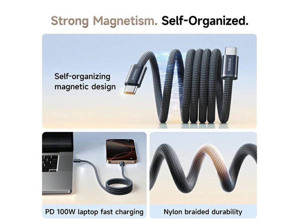 Hledáte kvalitní a výkonný USB-C kabel, který zvládne nejen běžné nabíjení, ale i napájení výkonných zařízení, jako jsou notebooky?Baseus Dynamic 4 Pro je ideální volbou. Tento kabel kombinuje špičkový výkon, praktický magnetický design a vysokou odolnost – ať už ho používáte doma, v kanceláři nebo na cestách.