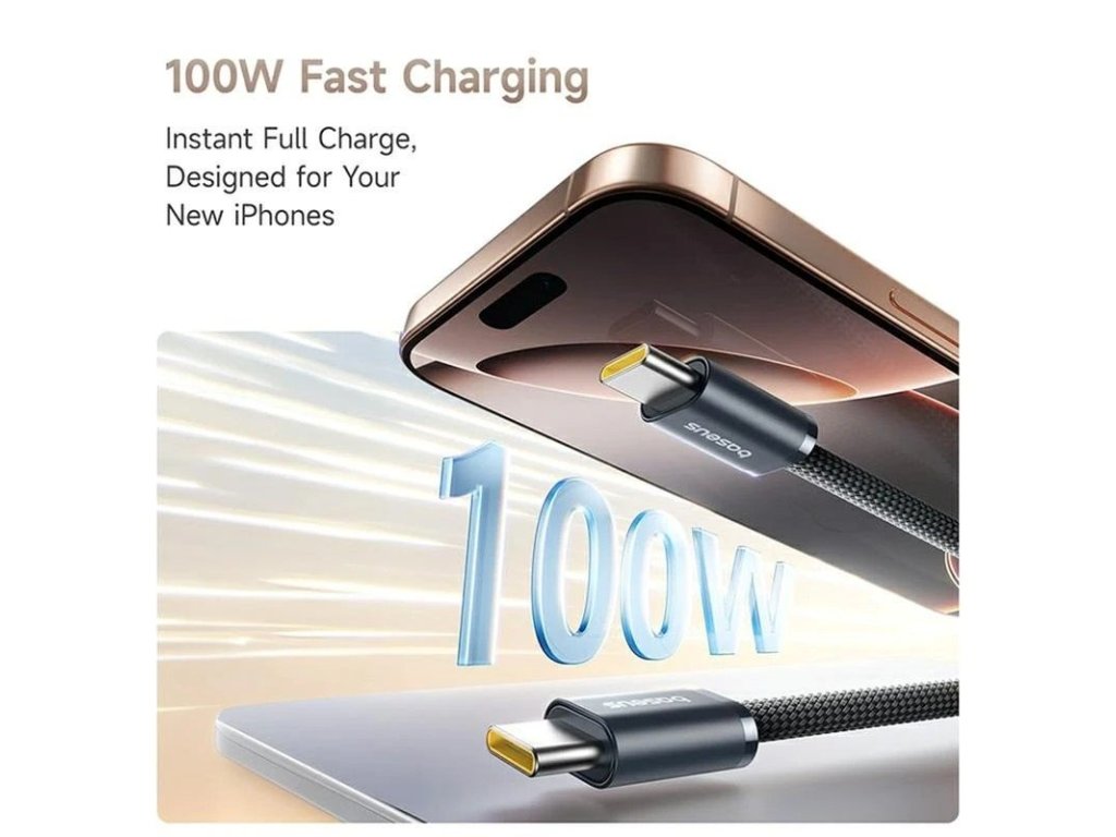 S délkou 1 metr je kabel dostatečně dlouhý pro běžné používání – na stole, při cestování nebo doma – ale zároveň se dobře vejde do batohu nebo tašky bez zbytečného přebytku.